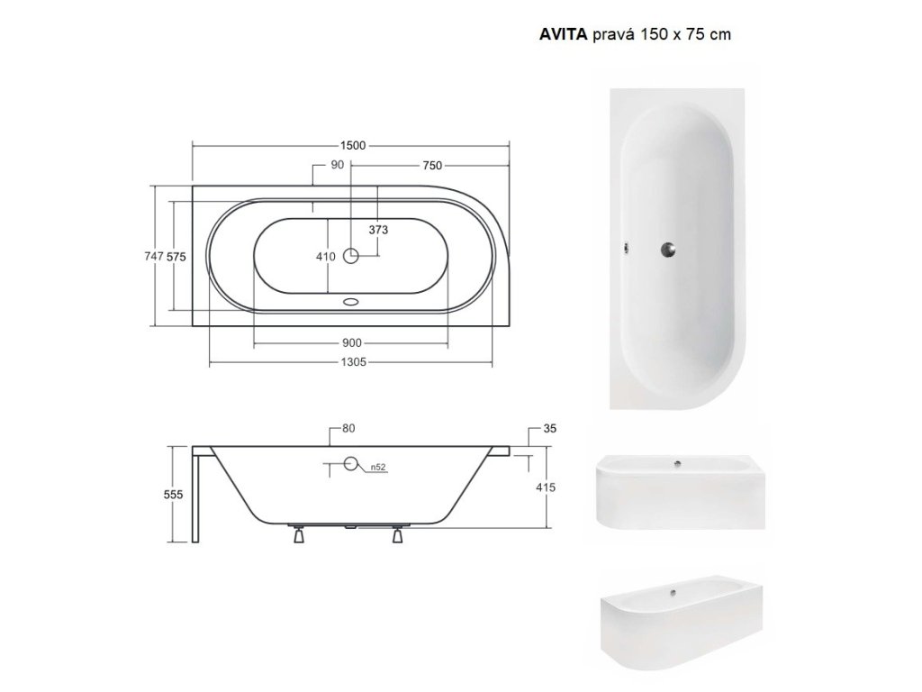 | Rozměr vany: | 150 × 75 cm |