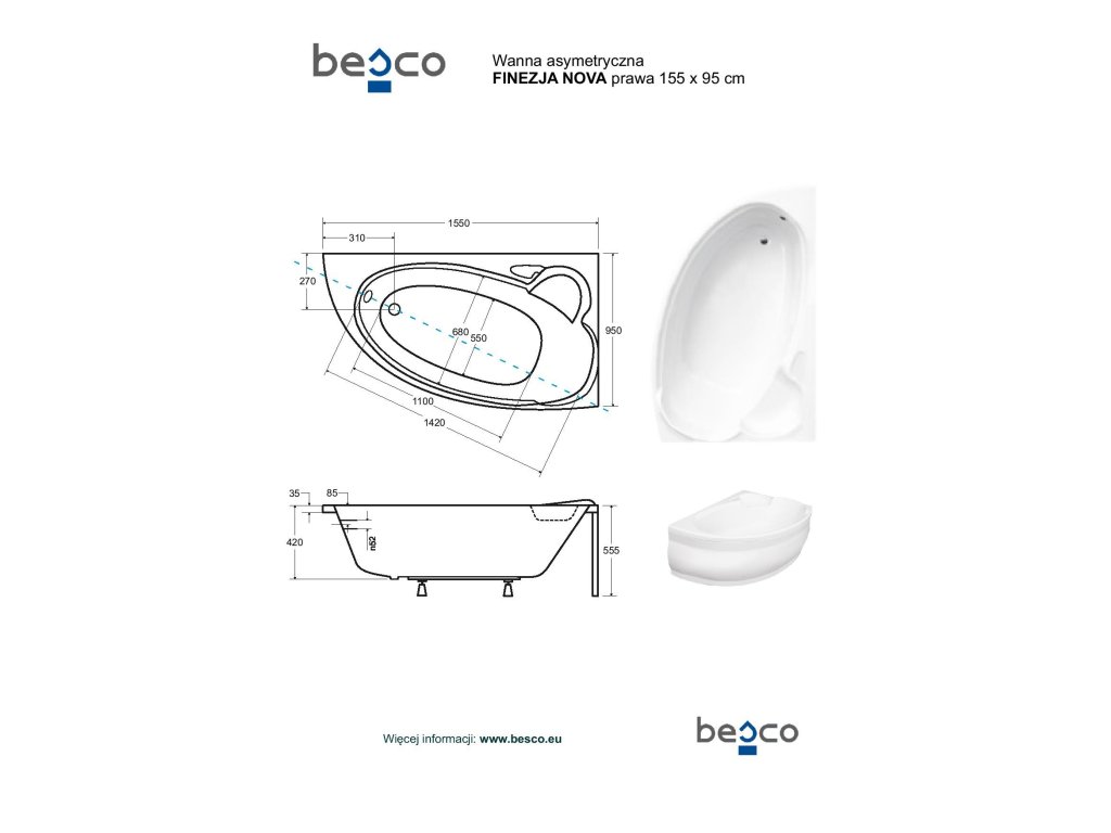 Asymetrická vana FINEZJA NOVA vyniká vysoce kvalitním zpracováním a spolehlivou funkčností všech součástí a materiálů.