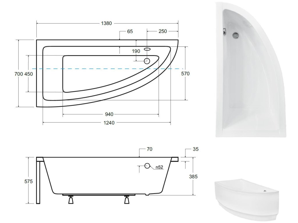 | Rozměr vany: | 140 × 70 cm |