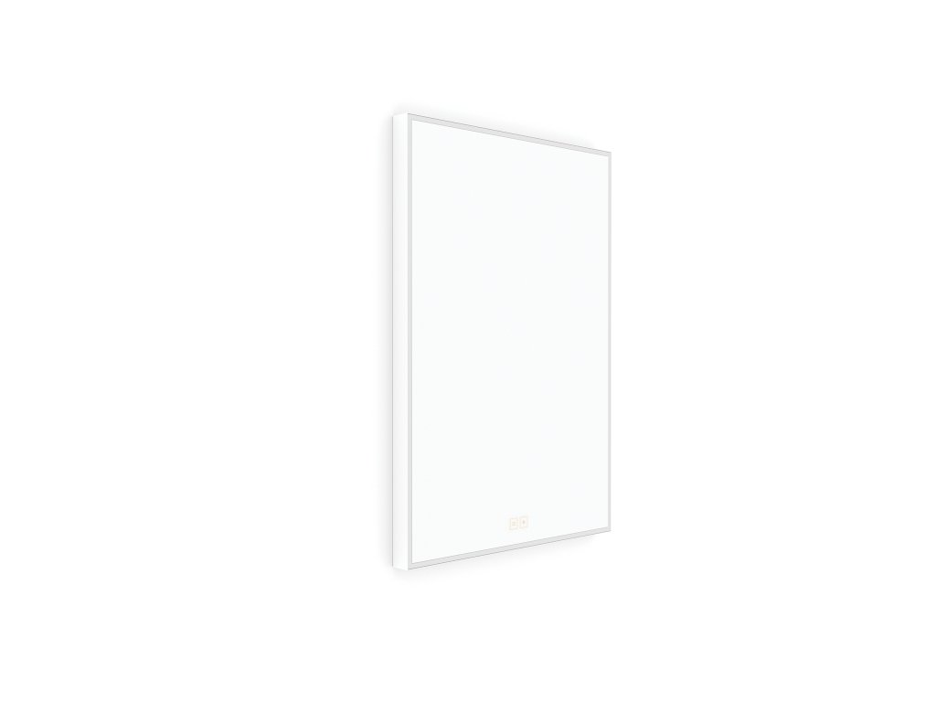 Obdélníkové zrcadlo s rámem s ostrými rohy a celoobvodovým svícením pro dokonalé a rovnoměrné osvětlení.Zrcadlo se ovládá dvěma dotykovými podsvícenými senzory, které umožňují změnu barvy světla, nastavení intenzity osvětlení (stmívání) a disponují paměťovou funkcí pro uložení posledního nastavení. Kromě toho lze zrcadlo ovládat i pomocí nástěnného vypínače, což zvyšuje jeho flexibilitu a pohodlí použití.