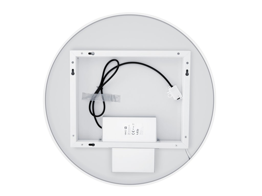 Kulaté zrcadlo s rámem a s celoobvodovým svícením pro dokonalé a rovnoměrné osvětlení.Zrcadlo se ovládá dvěma dotykovými podsvícenými senzory, které umožňují změnu barvy světla, nastavení intenzity osvětlení (stmívání) a disponují paměťovou funkcí pro uložení posledního nastavení. Kromě toho lze zrcadlo ovládat i pomocí nástěnného vypínače, což zvyšuje jeho flexibilitu a pohodlí použití.