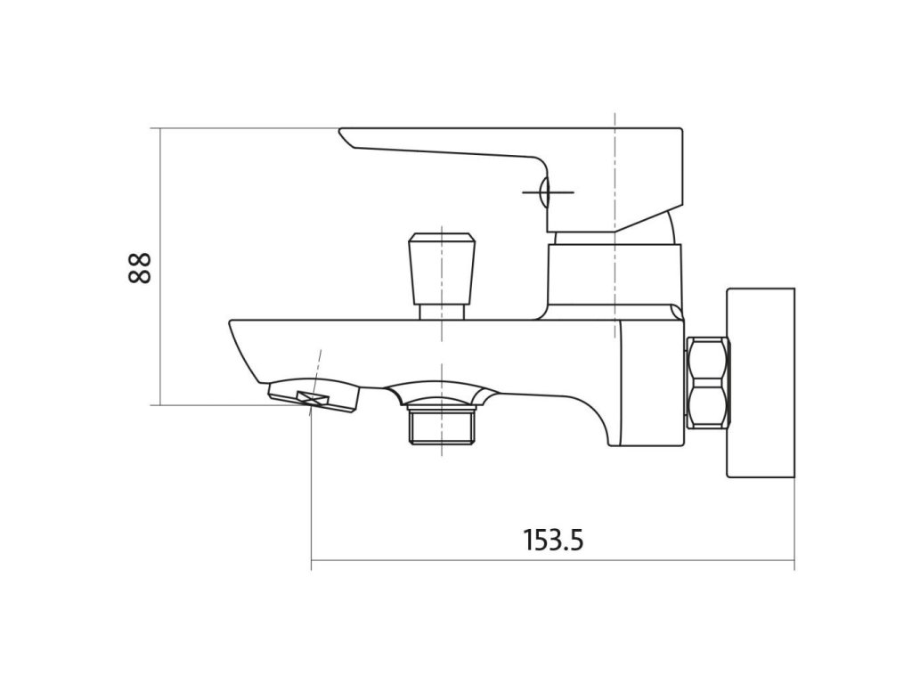 Vanová baterie MILLE jednopáková, dvouotvorová, nástěnná, s pevným výtokovým ramínkem, s přepínačem, CHROM