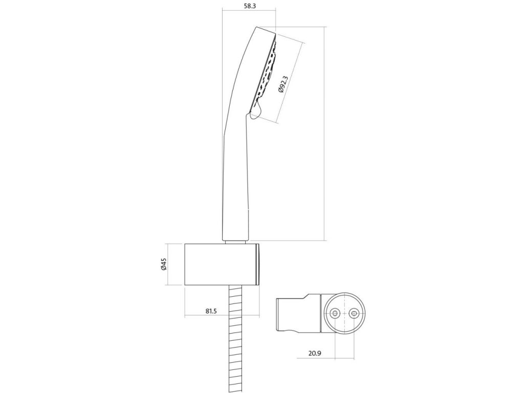 Sprchová souprava s bodovým držákem LANO, 5 funkční, průměr ruční sprchy 8,5cm, kovová hadice dlouhá 150cm, s bodovým držákem a montážní sadou