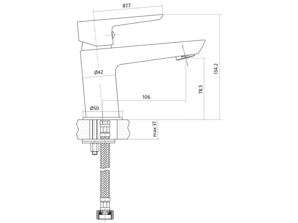 Umyvadlová baterie MILLE jednopáková, jednootvorová, stojánková, s pevným výtokovým ramínkem, CHROM, s výpustí kovovou