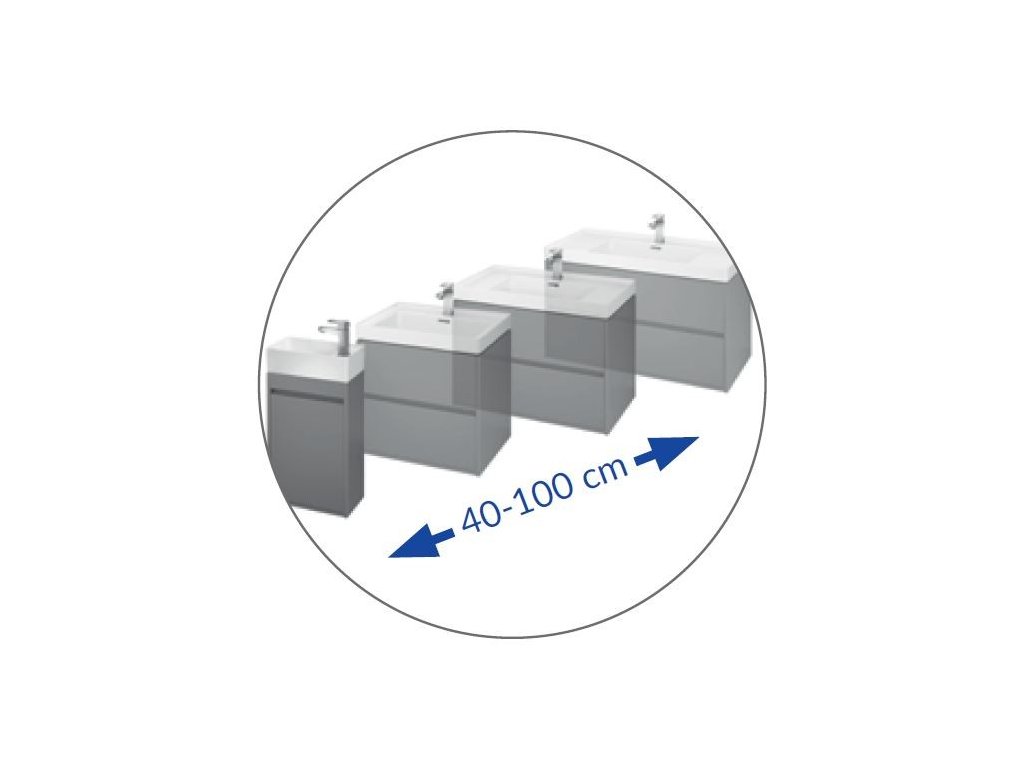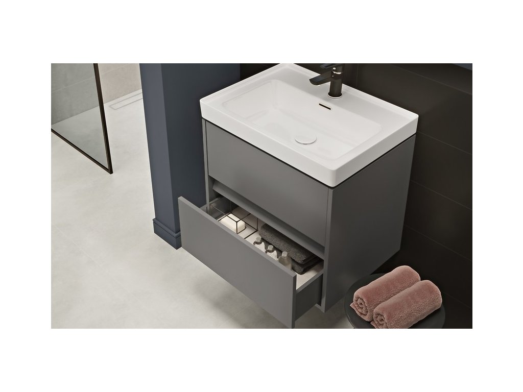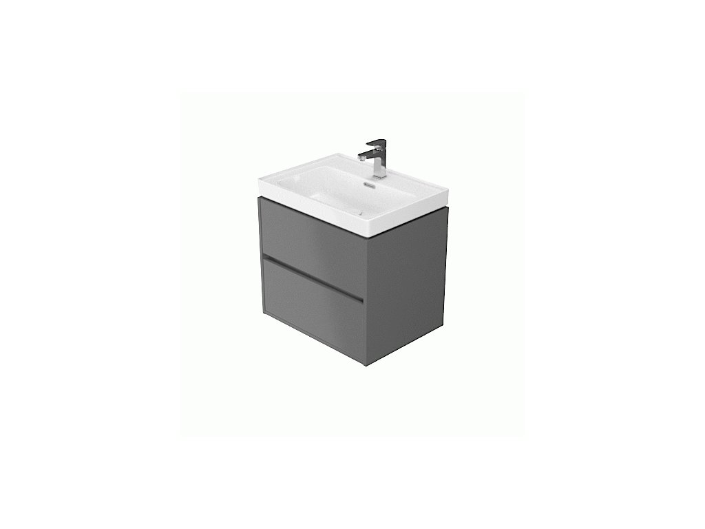 Závěsná umyvadlová skříňka CREA 50 se dvěma výsuvnými boxy v šedém matném, vyrobená moderní technologií AQUASAFE /zvýšená odolnost proti vlhkosti/. Skříňka působí elegantním vzhledem díky zapuštění přední části a využití skrytých madel. Zásuvky jsou vybavené pojezdy "HAFELE" s plným výsuvem a tichým uzavíracím systémem, který zvyšuje komfort používání.