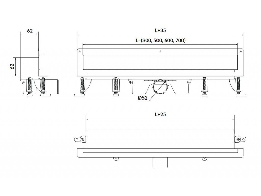 Lineární žlaby TAKO jsou vyrobeny z vysoce kvalitní kyselinovzdorné nerezové oceli, odolné vůči chemikáliím. Vestavěný sifon má speciální koš pro rychlé čištění odtoku z horní části a poskytuje rychlý průtok vody až 56 l / min. Sada s lineárním odtokem obsahuje všechny prvky potřebné pro jeho instalaci: těsnící rohož, nožičky a sifon.