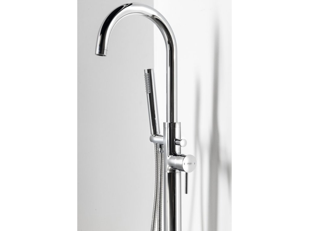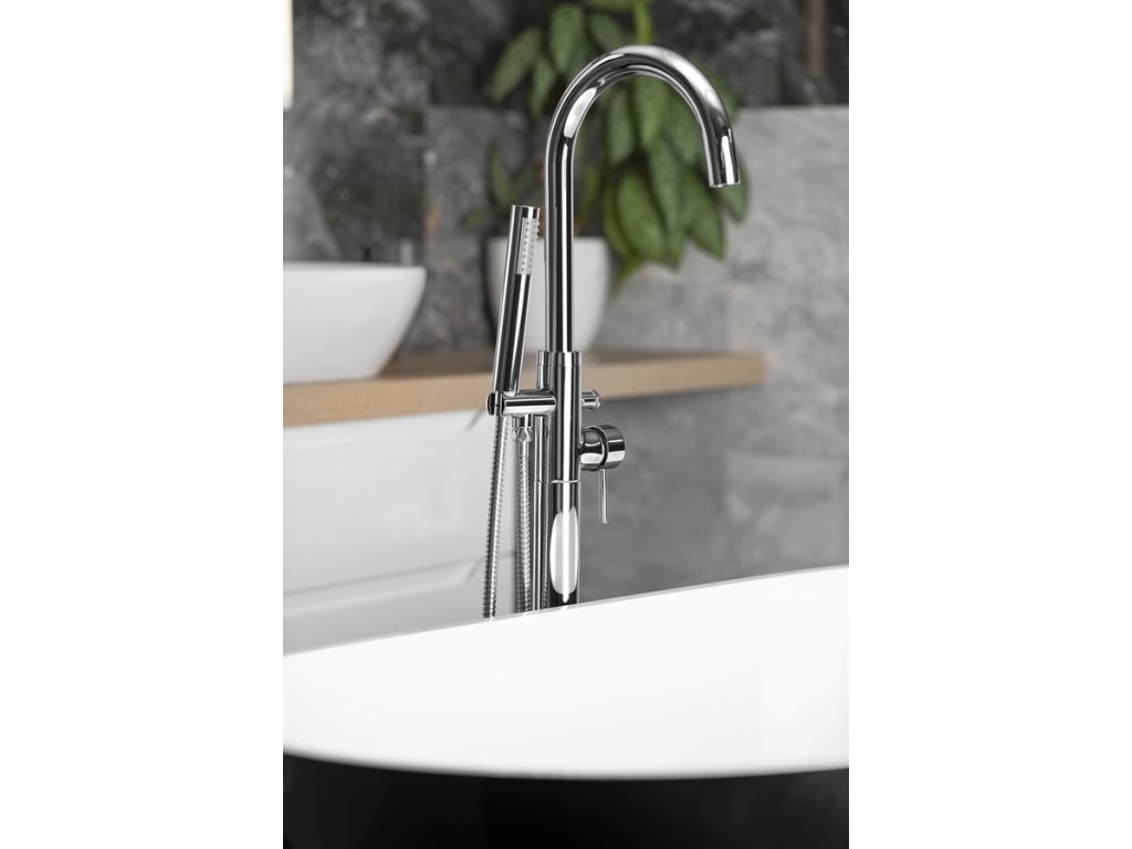 VERSI vanová baterie s připojením do podlahy, chrom je ideální volbou pro moderní koupelny. Díky svému elegantnímu designu a chromovému provedení dokonale ladí se všemi typy van...