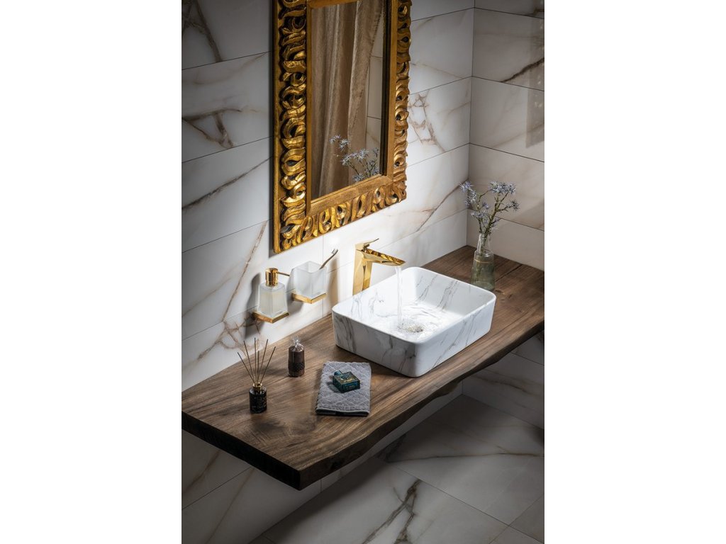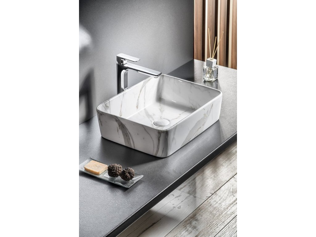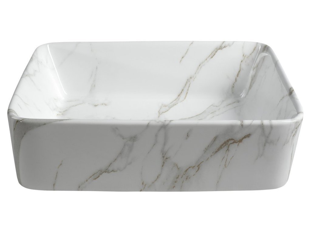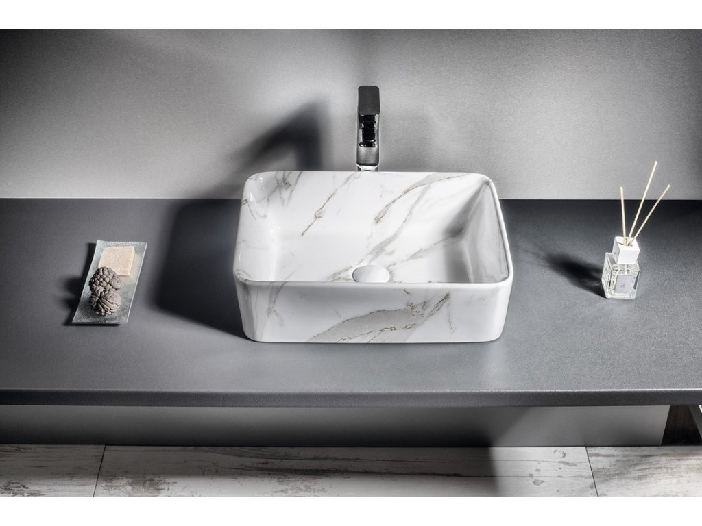 Série keramických umyvadel DALMA zaujme kamenným efektem. Umyvadla jsou glazovaná s vypálenými obtisky v designu kamene, čímž je zaručena stálost a trvanlivost dekoru. Vybírat můžete nejen ze tří dekorů v odstínech mramoru, ale i z pěti tvarů. Umyvadla jsou určena k postavení na desku, ke všem lze dokoupit uzavíratelnou výpust v barvě umyvadla.