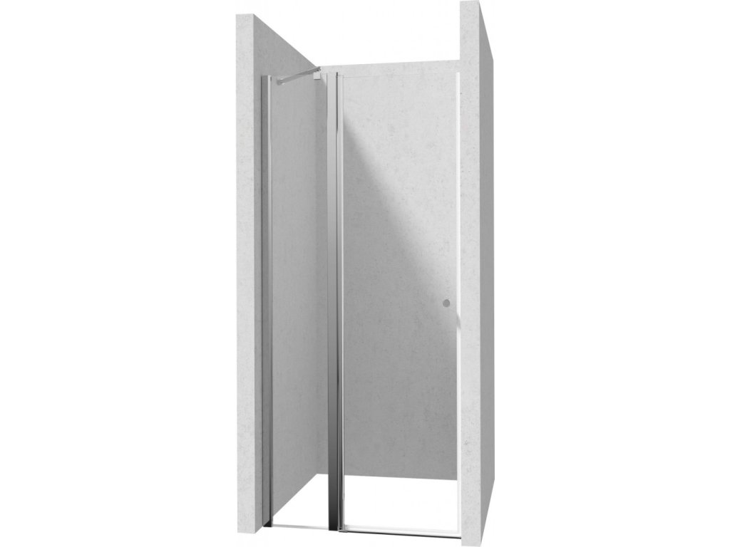 Minimalistické sprchové dveře lze použít jak do kabinek, tak do vestavěných výklenků. Průhledné sklo opticky zvětšuje místnost. Klasické provedení dodává koupelně rafinovaný vzhled. Myslíme i na bezpečnost členů domácnosti, proto sklo podrobujeme procesu kalení, kdy se sklo stává tvrdším, pružnějším a odolnějším. Sprchové dveře jsou také pokryty vrstvou Active Cover, která má hydrofobní vlastnosti. Nejsou zde žádné nevzhledné skvrny a čištění je potřeba mnohem méně často. Prvek je široký 90 cm. Náklon-zavřeno.