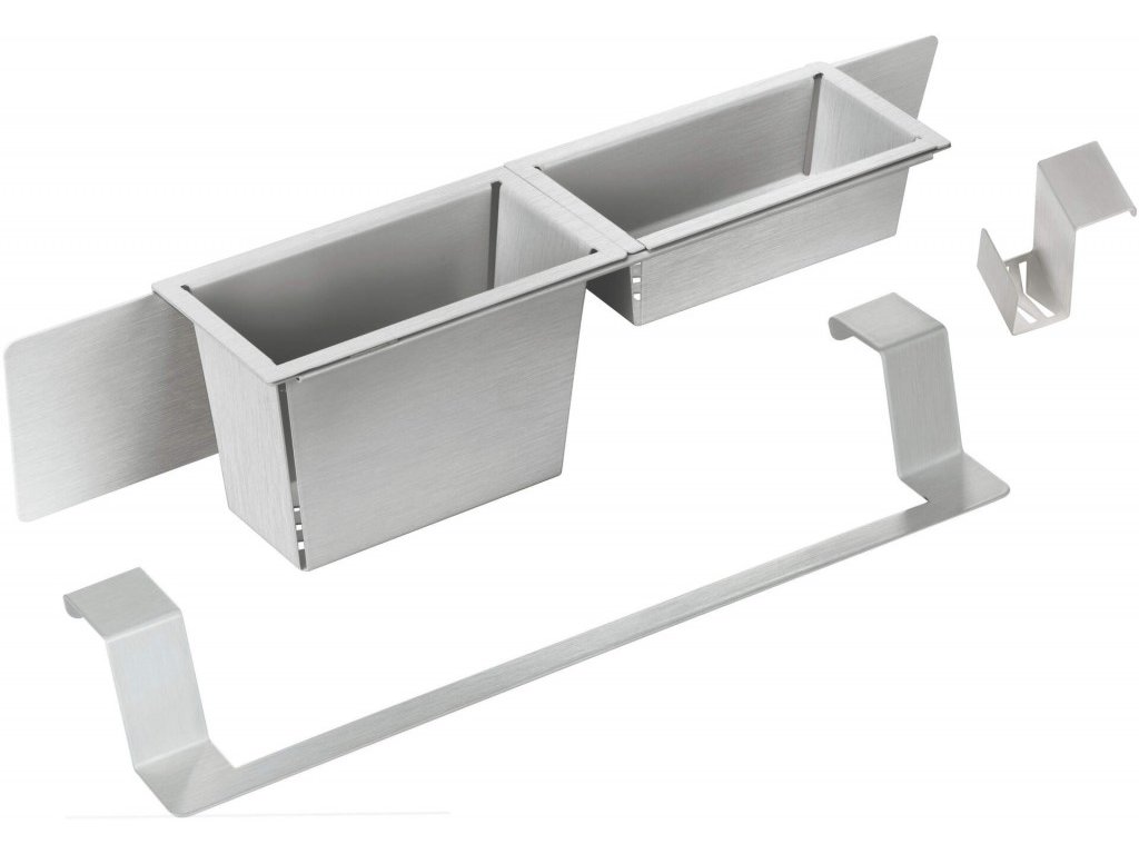 Chytrá sada doplňků, která se bude hodit v každé kuchyni. Pomáhají udržovat hygienu, protože usnadňují odkapávání houbičky nebo příboru a blokují tak množení bakterií a jiných mikroorganismů. Navíc jsou velmi diskrétní a funkční. Mokrá část kuchyně je čistá a uklizená. Sada příslušenství se skládá ze 2 košů s odkapávačem, háčkem na houbičku a kolejnice na hadřík. Byly vyrobeny z kvalitní, broušené nerezové oceli, takže se budou snadno hodit k ostatním prvkům kuchyňského vybavení.