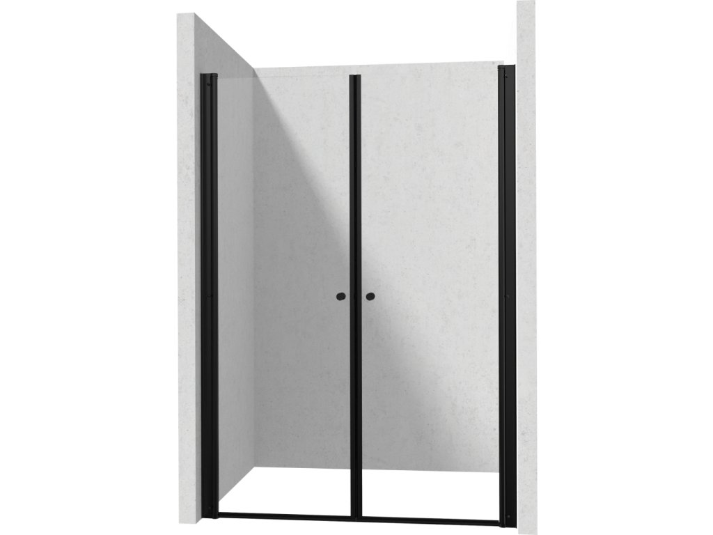 Sprchové dvojité dveře KERRIA PLUS výšky 2000 mm s křídlovými dveřmi s transparentním sklem, které opticky zvětšují místnost a hliníkovým profilem v černém matném provedení. Sklo o síle 6 mm je podrobeno procesem kalení, kdy se sklo stává tvrdším, pružnějším a odolnějším. Sprchová zástěna je pokryta vrstvou Active Cover, která má hydrofobní vlastnosti. Nejsou zde žádné nevzhledné skvrny a čištění není potřeba tak často.