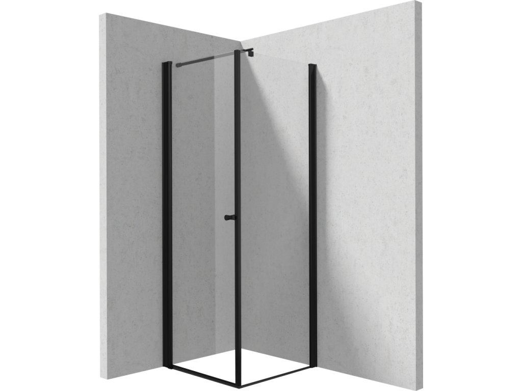 Sprchový kout KERRIA PLUS výšky 2000 mm s křídlovými dveřmi a boční pevnou stěnou s transparentním sklem, které opticky zvětšují místnost a hliníkovým profilem v černém matném provedení. Sklo o síle 6 mm je podrobeno procesem kalení, kdy se sklo stává tvrdším, pružnějším a odolnějším. Sprchový kout je pokryt vrstvou Active Cover, která má hydrofobní vlastnosti. Nejsou zde žádné nevzhledné skvrny a čištění není potřeba tak často.