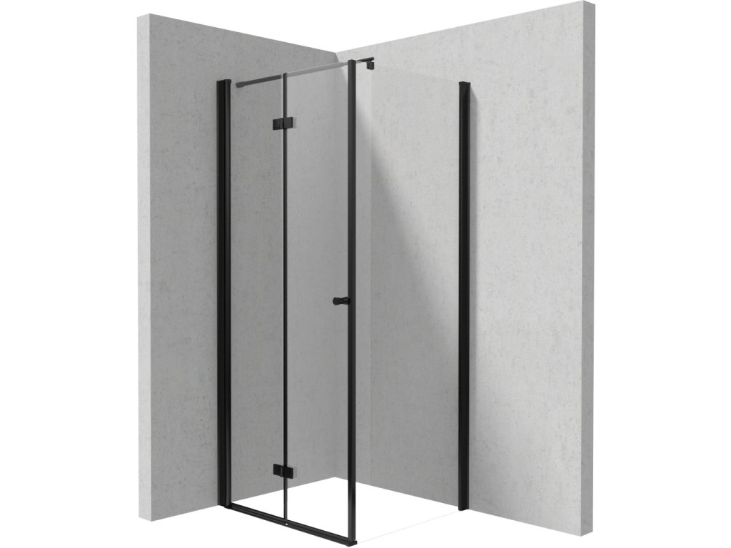 Sprchový kout KERRIA PLUS se skládacími dveřmi a pevnou boční stěnou výšky 2000 mm s transparentním sklem, které opticky zvětšují místnost a hliníkovým profilem v černém matném provedení. Sklo o síle 6 mm je podrobeno procesem kalení, kdy se sklo stává tvrdším, pružnějším a odolnějším. Sprchový kout je pokryt vrstvou Active Cover, která má hydrofobní vlastnosti. Nejsou zde žádné nevzhledné skvrny a čištění není potřeba tak často. Vyznačují se velmi tichým chodem, a to díky magnetickému těsnění, které změkčuje zavírání.