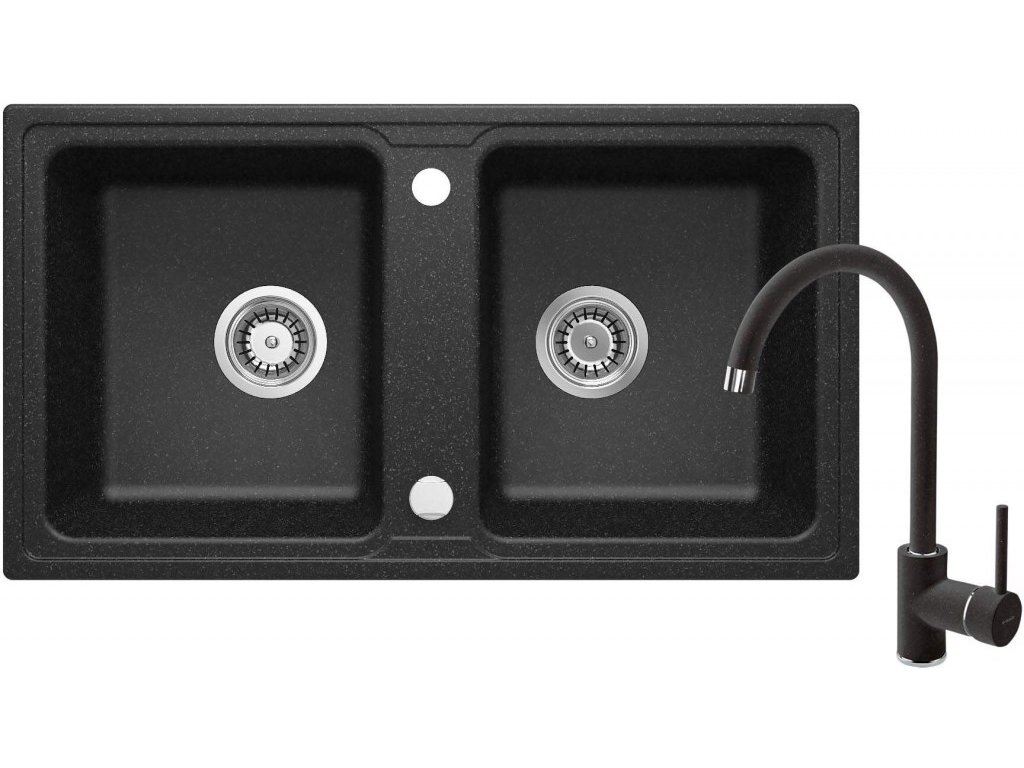 Granitový dřez s baterií tvoří kompletní kuchyňskou sestavu. Byla vyrobena z odolné, přírodní žuly, která je odolná nejen vůči vysoké teplotě a jejím výkyvům, ale i nárazům a změně barvy, v souladu s evropskou normou PN-EN 13310. Navíc byla obohacena o hydrofobní vrstvu což usnadňuje tok jednotlivých kapek. Ve stejné barvě je i vodovodní baterie s pohodlnou výlevkou. Klasický 2-miskový dřez je standardním modelem pro většinu kuchyní. Dává široké možnosti z hlediska mytí a oplachování nádobí, ale také ovoce, zeleniny nebo rozmrazování potravin.