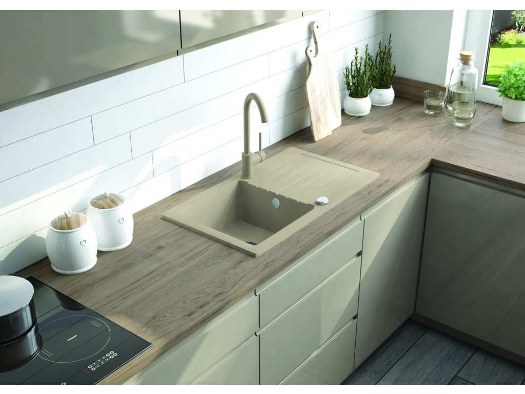 Granitový vestavný dřez Mono 53x50 cm v černé barvě kombinuje moderní design a vysokou odolnost. Vyroben z kvalitního granitového kompozitu, odolného proti poškrábání, vysokým...