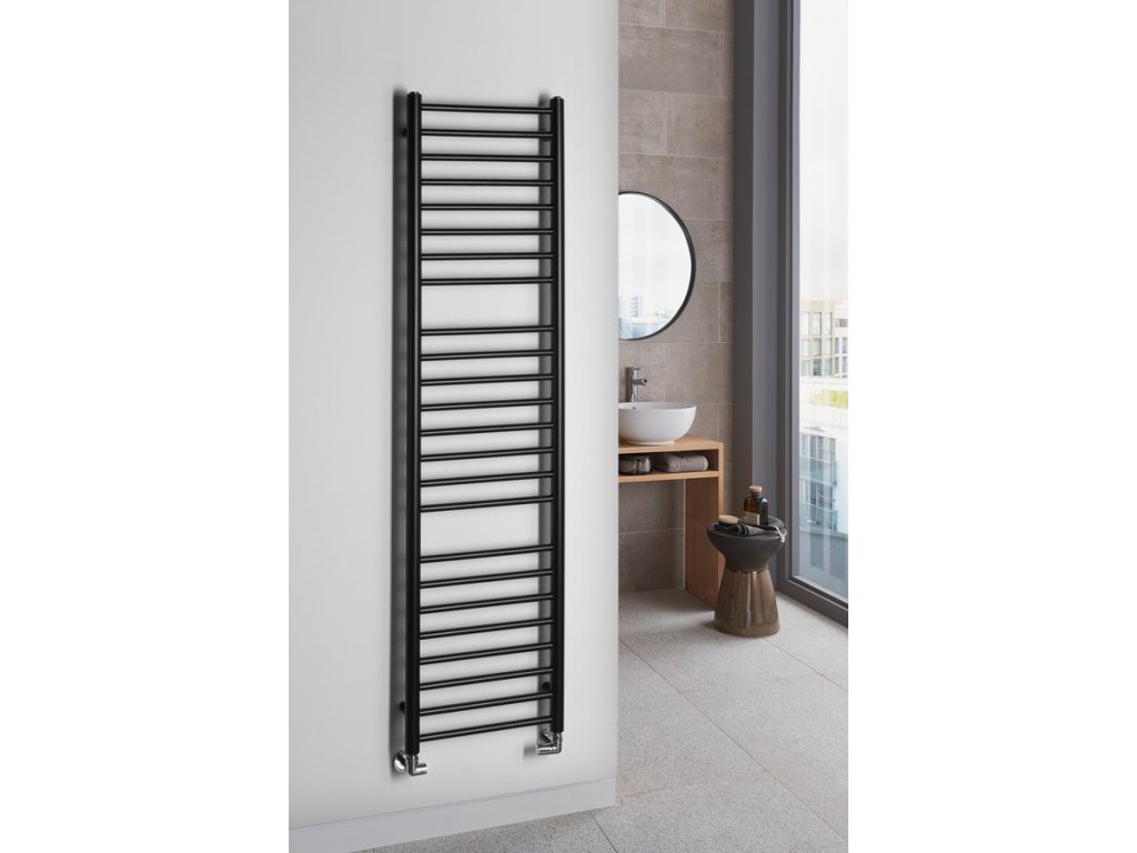 Elegantní koupelnový radiátor ze správně kombinovaných průměrů vodorovných a svislých trubek. Krása v jednoduchosti skloubená s atraktivním barevným provedením.