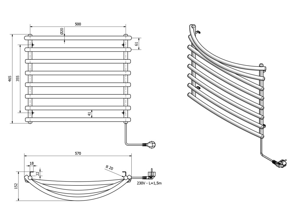Elektrické otopné těleso určené k nahřívání a sušení ručníků, které oceníte především v zimním období. Sušáky jsou z lakované oceli v bílé barvě (RAL9016) a v barvě šedého hliníku - metalízy (RAL9007). Uvnitř je umístěn topný kabel bez použití kapalné plnící směsi.