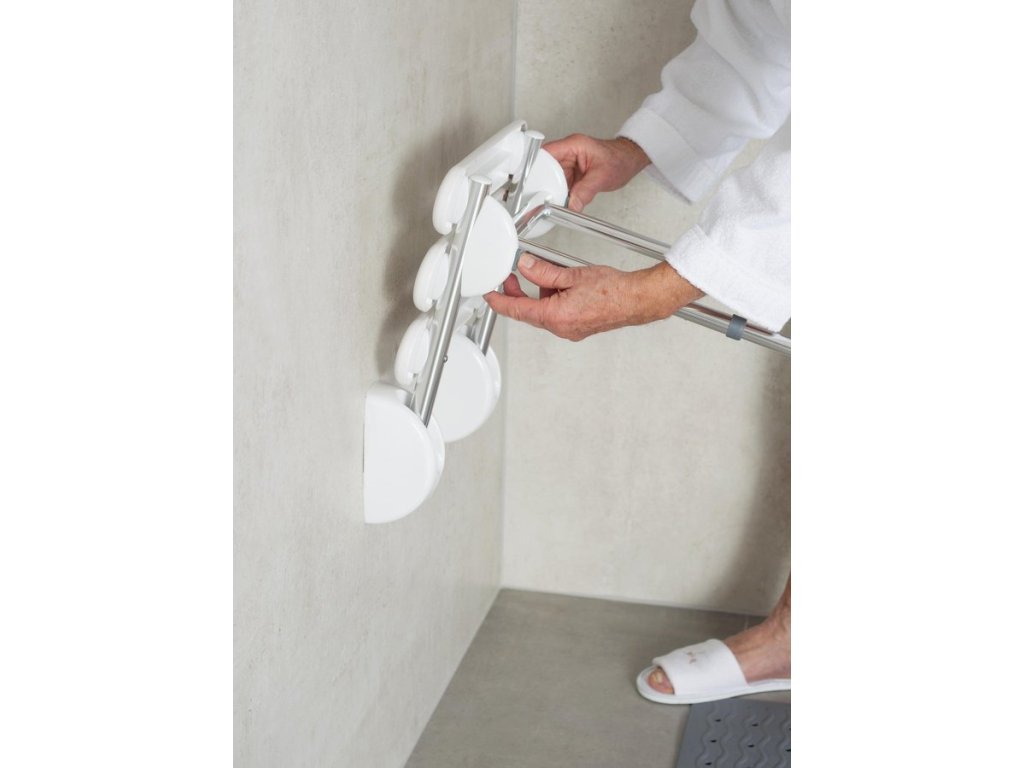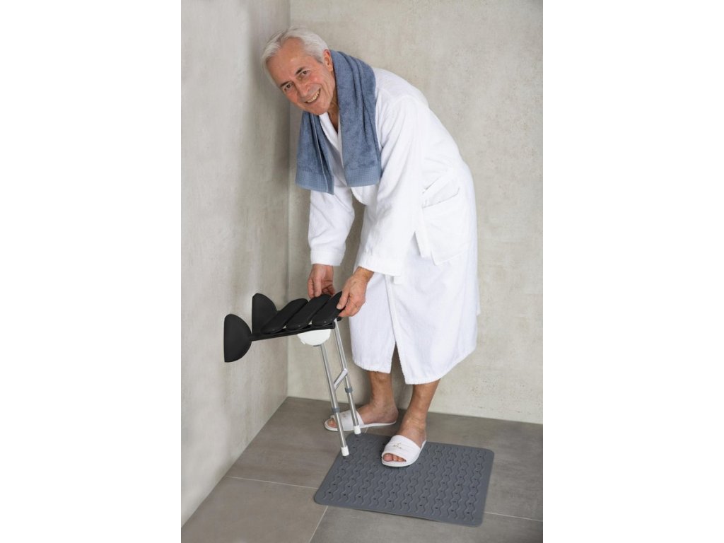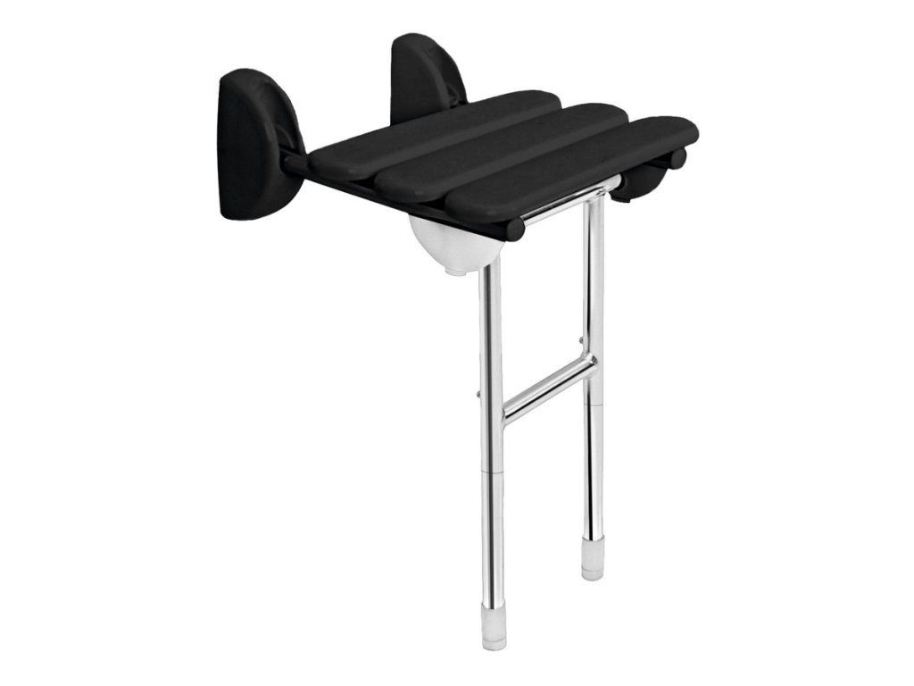 HANDICAP sklopné sedátko do sprchového koutu s podpěrou, 38x36cm, černá