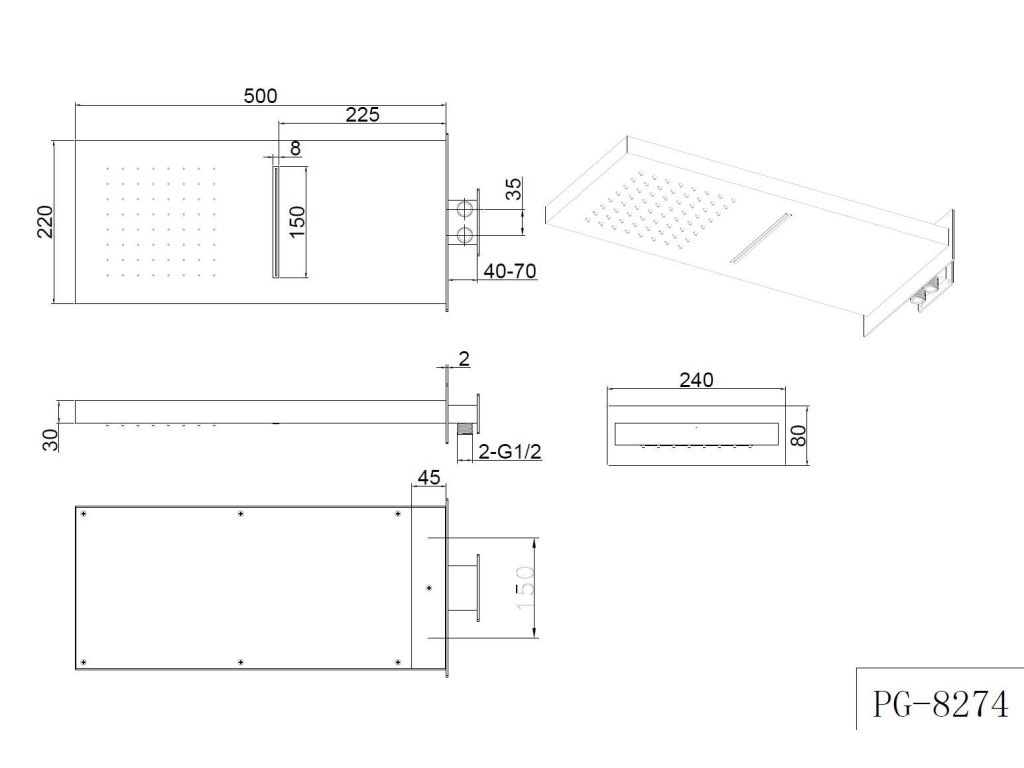 Nástěnné sprchy nabízíme ve jedné variantě a to s kaskádovým přílivem vody a klasickou hlavovou sprchou. Hlavové sprchy ke své funkci potřebují podomítkovou baterii bez přepínače. Pokud má hlavová sprcha i kaskádový příliv vody tak s dvoucestným přepínačem. V případě, že chcete využívat ještě ruční sprchu, doporučujeme použít baterii třícestnou, nebo přidat k dvoucestné baterii ještě baterii jednocestnou nebo použít tři jednocestné baterie pro každou funkci zvlášť. Hlavové sprchy zachycují dynamiku vody. Vzhled, který nikdy nezevšední a kvalita použitých materiálů Vám přinesou jistotu správné volby hlavové sprchy pro Váš domov. Sprcha je vyrobena z kvalitní nerezové oceli s vysokým leskem a s úpravou trysek (ANTI CALK) pro snazší údržbu.
