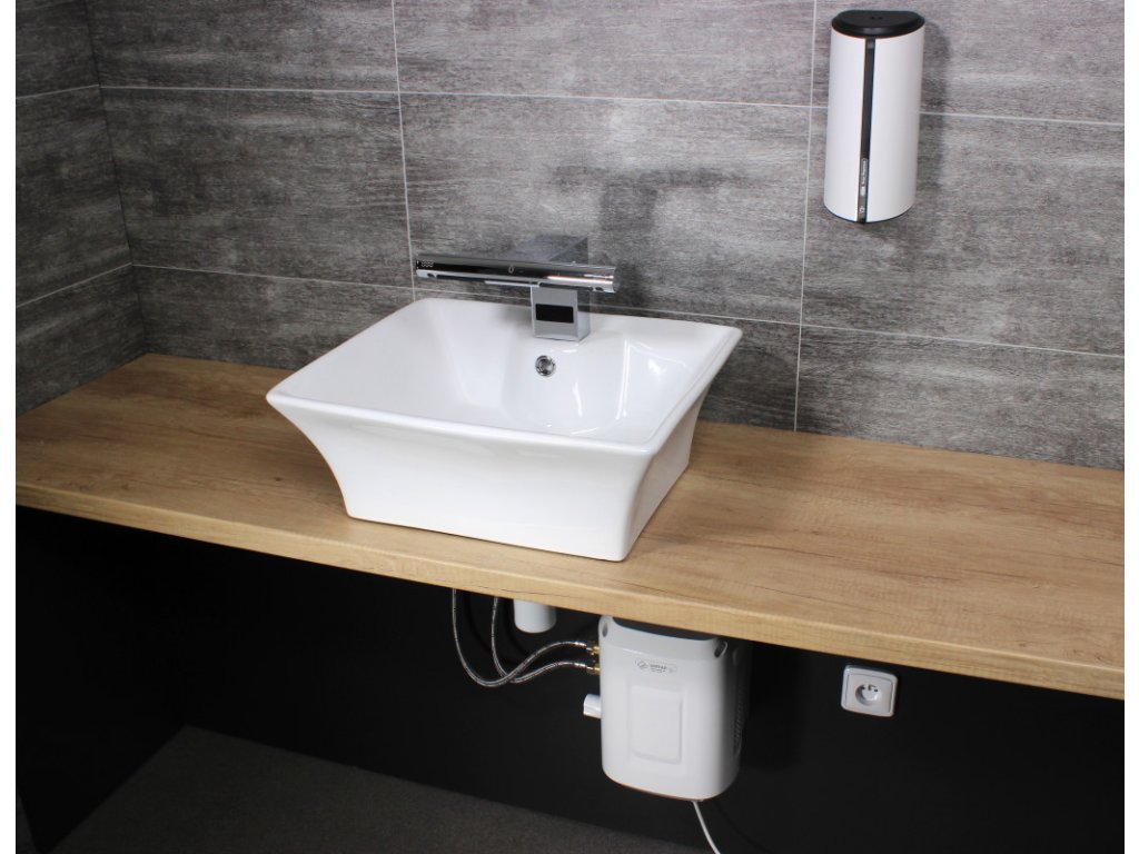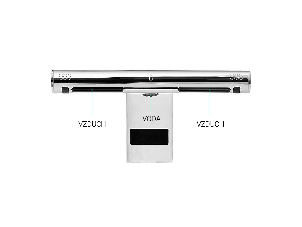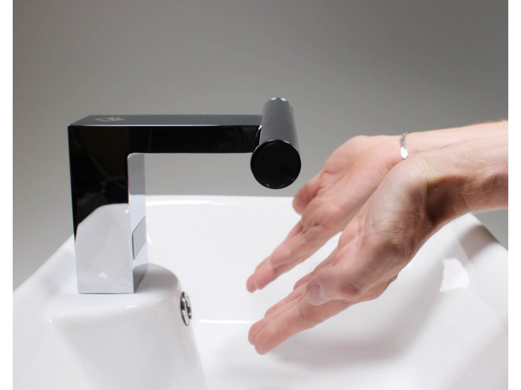 Hygienické mytí a sušení rukou – jednoduché, rychlé a pohodlné. Své ruce jednoduše vložíte doprostřed pod vodovodní baterii, automaticky začne téct voda o předem nastavené teplotě. Po stranách baterie se nachází dvě trysky vysoušeče. Spuštění vysoušeče je rovněž bezkontaktní, stačí pod trysky vsunout ruce a dle potřeby je osušit.