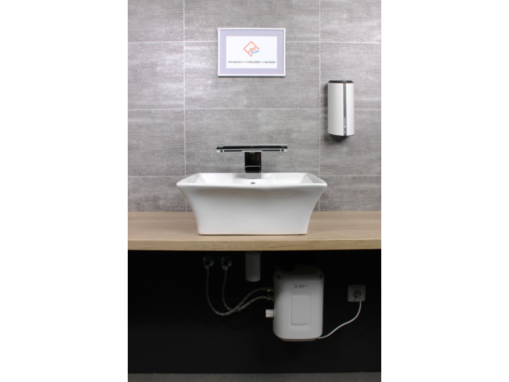 Instalace a montáž baterie nevyžaduje nutnost stavebních úprav. Jednotka vysoušeče se jednoduše připevní na zeď pod umyvadlo nebo do umyvadlové skříňky.
