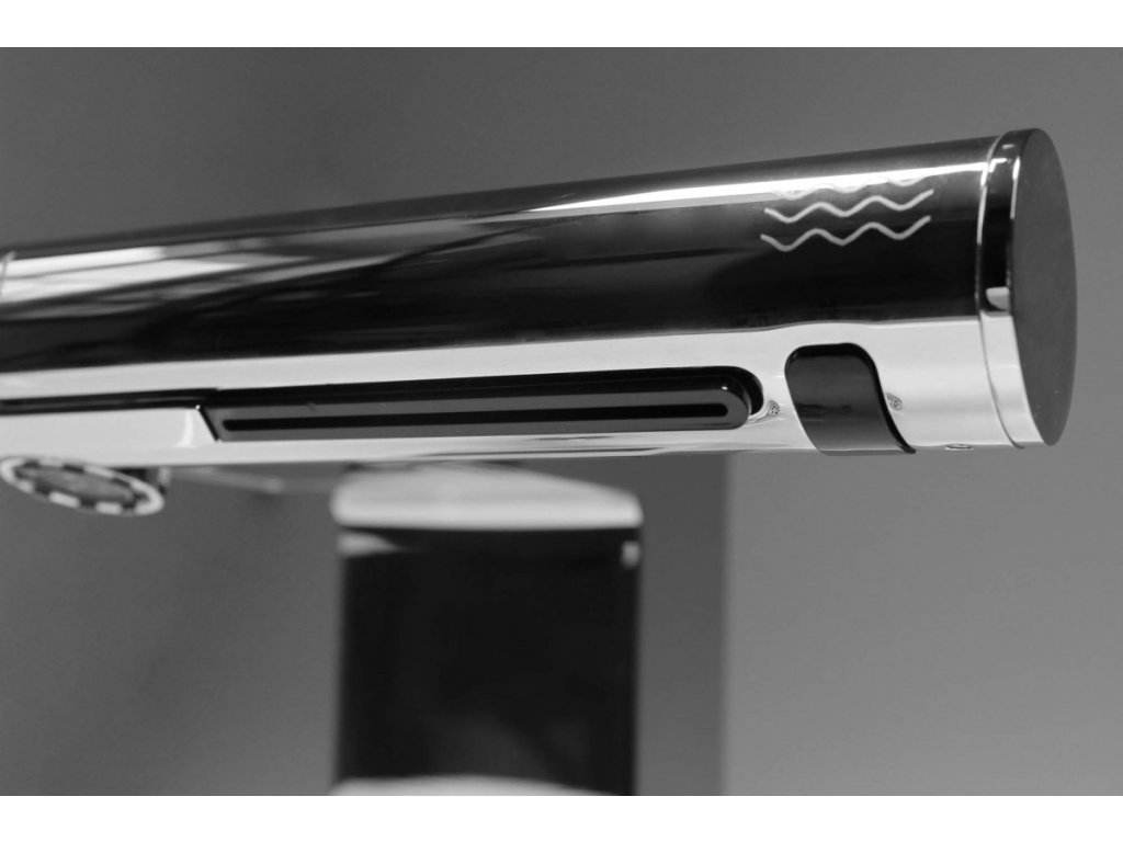 Baterie disponuje bočními rameny s podélnými tryskami, které stírají vodu z rukou proudem vzduchu rovnou do umyvadla. Podlaha, tak zůstává suchá a maximálně bezpečná.