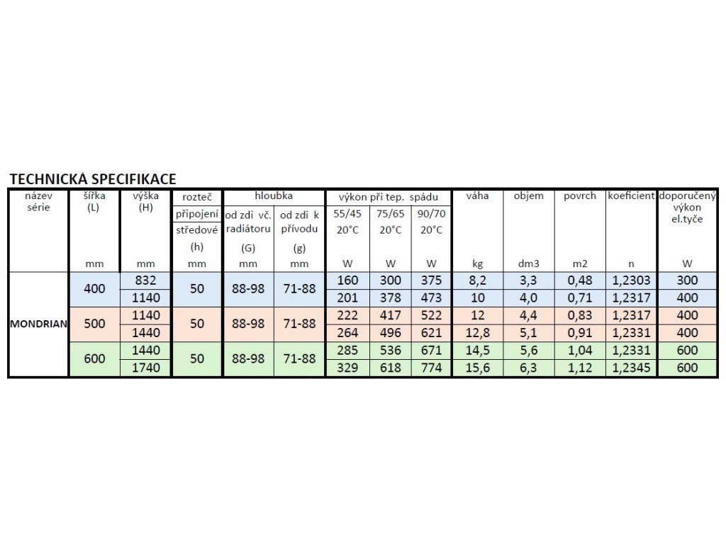 Dostupné rozměry radiátoru MONDRIAN do koupelny: