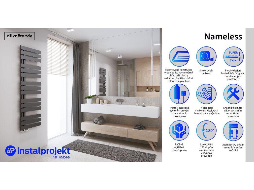 Radiátor lze objednat s příplatkovou výbavou Příplatek - Elektrický radiátor a díky tomu dostanete čistě elektrický radiátor (s již osazenou topnou tyčí HOT a naplněný speciální nemrznoucí teplonosnou směsí do otopných těles). Elektrické radiátory nejsou připojeny na rozvody TUV, snadno ho zapojíte pouze do elektrické zásuvky a užíváte si teplo v koupelně kdykoliv chcete.
