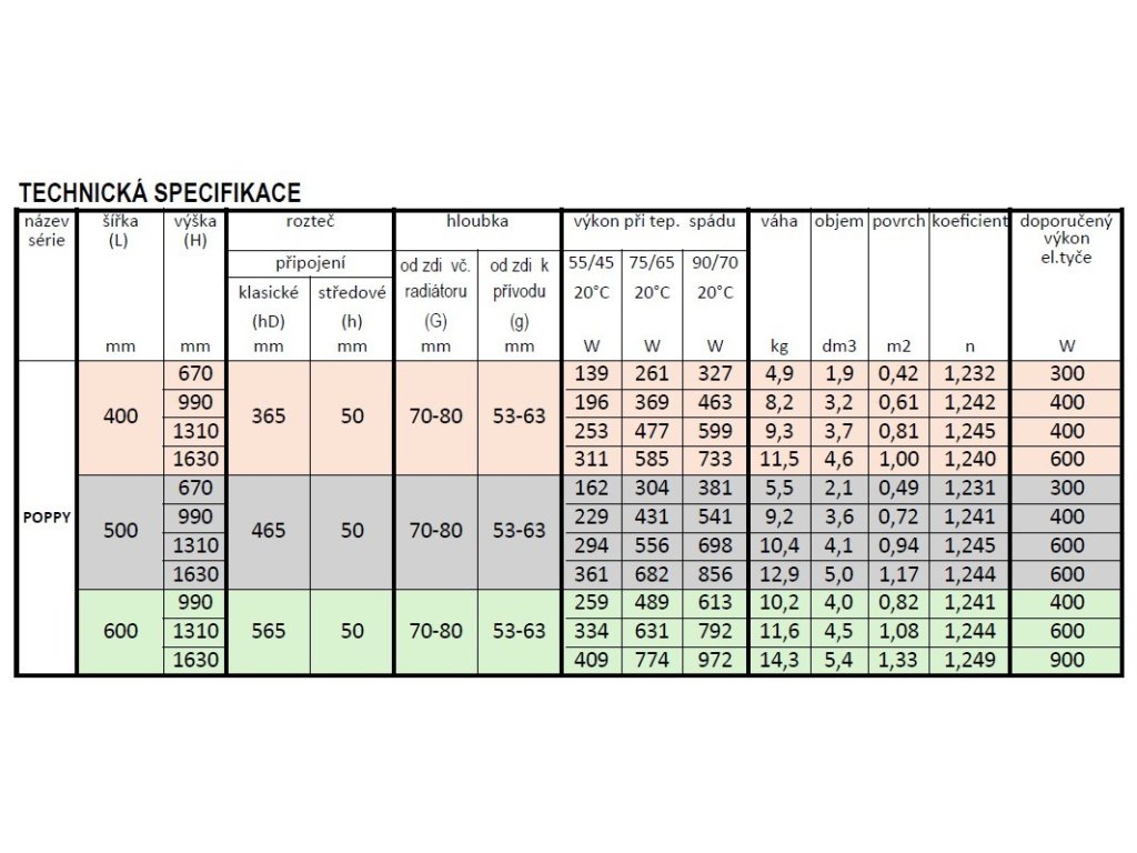 Dostupné rozměry radiátoru POPPY koupelny: