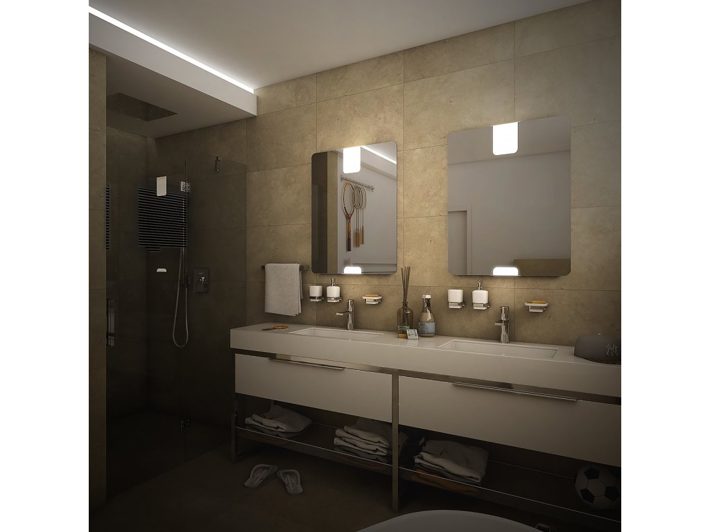 Koupelnové podsvícené LED zrcadlo. Příkon 9 W, barevná teplota 6500 K. 648 Lumen.