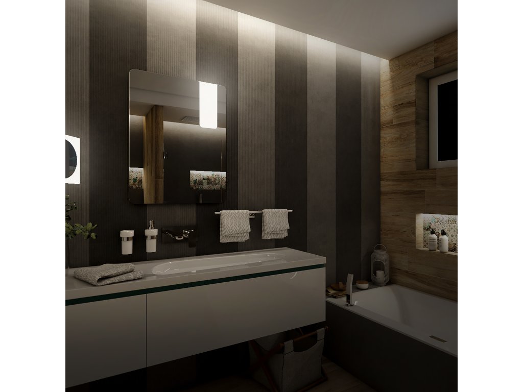 Zrcadlo do koupelny 60x80 s osvětlením je skvělým doplňkem do koupelny. Zrcadla do koupelny NIMCO vynikají kvalitním zpracováním a moderním designem. Svícení za použití akrylátového skla plexiglass. Konstrukce je z hliníkového rámu 32x19 mm, sklo zrcadla o tloušťce 5 mm. Zrcadlo lze uchytit horizontálně a vertikálně. Připojení 220-240 V. Ochrana IP 44. Bez vypínače. Zapojení do el. rozvodu a zapínání přes vypínač světel v místnosti. LED čipy s vysokým výkonem. Barevná Teplota denní bílá – jasné polední světlo. Životnost LED diod je až 50 000 hodin.Koupelnové podsvícené LED zrcadlo