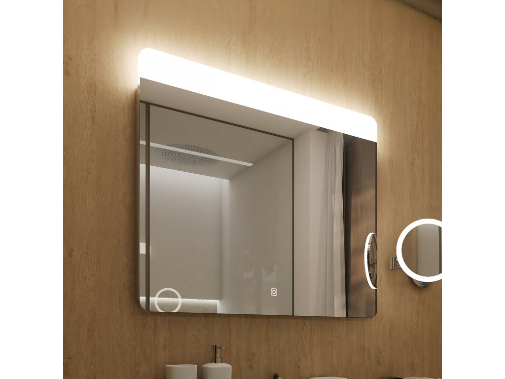 Zrcadlo do koupelny 80x70 s osvětlením, dotykový senzor je skvělým doplňkem do koupelny. Zrcadla do koupelny NIMCO vynikají kvalitním zpracováním a moderním designem. Svícení za použití akrylátového skla plexiglass. Konstrukce je z hliníkového rámu 32x19 mm, sklo zrcadla o tloušťce 5 mm. Připojení 220-240 V. Zapínání / vypínání / ovládání dotykovým senzorem s pamětí. Možnost nastavení barevné teploty svícení. Životnost LED diod je až 50 000 hodin. Ochrana IP 44.