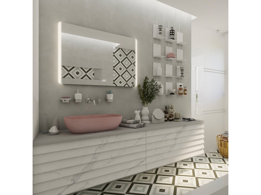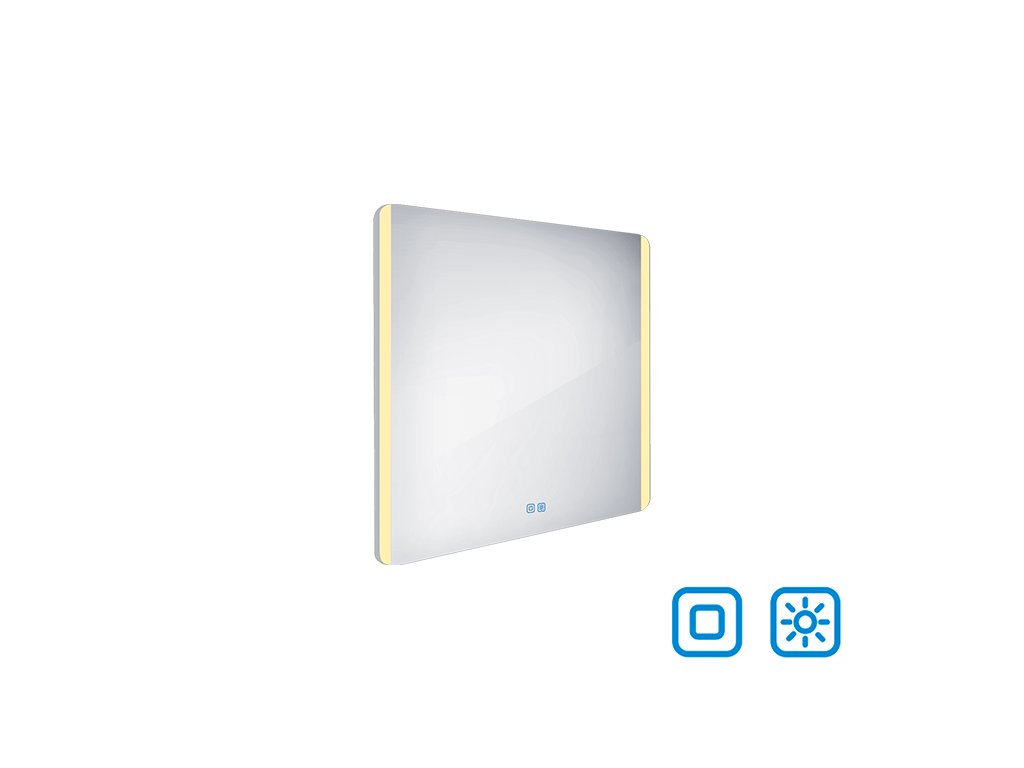 Obdélníkové bezrámové zrcadlo s oblými rohy a podsvícením ze stran pro moderní a elegantní vzhled.Zrcadlo se ovládá dvěma dotykovými podsvícenými senzory, které umožňují změnu barvy podsvícení, nastavení intenzity osvětlení (stmívání) a disponují paměťovou funkcí pro uložení posledního nastavení. Kromě toho lze zrcadlo ovládat i pomocí nástěnného vypínače, což zvyšuje jeho flexibilitu a pohodlí použití.