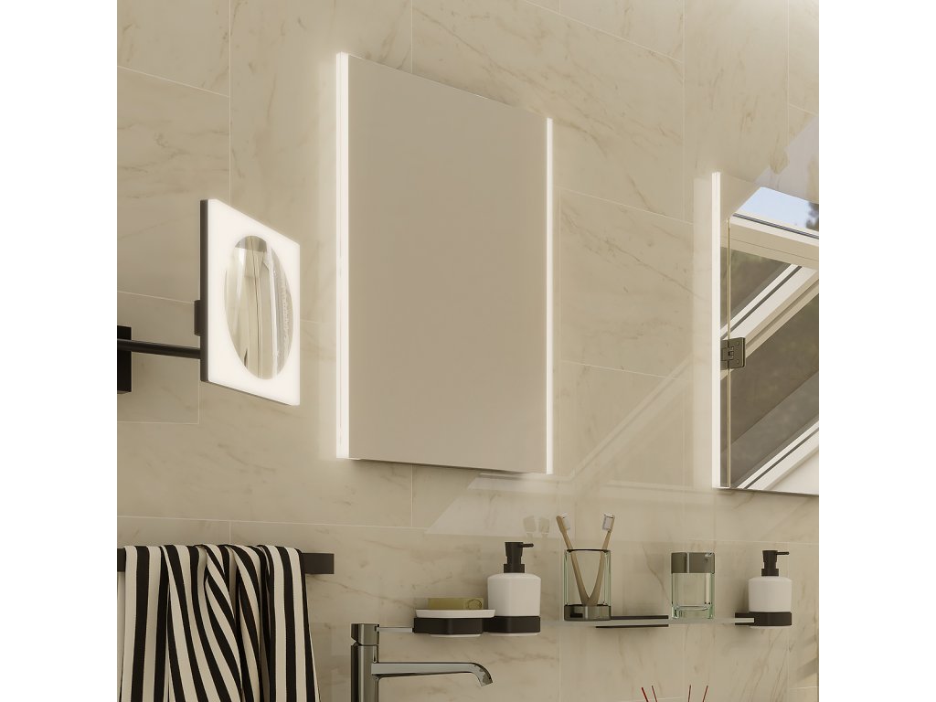 Moderní zrcadlo NATUREL 800 x 650 mm s horním LED osvětlením a spodním podsvícením přináší funkčnost i styl. Horní světlo zajišťuje jasné osvětlení, zatímco spodní podsvícení...