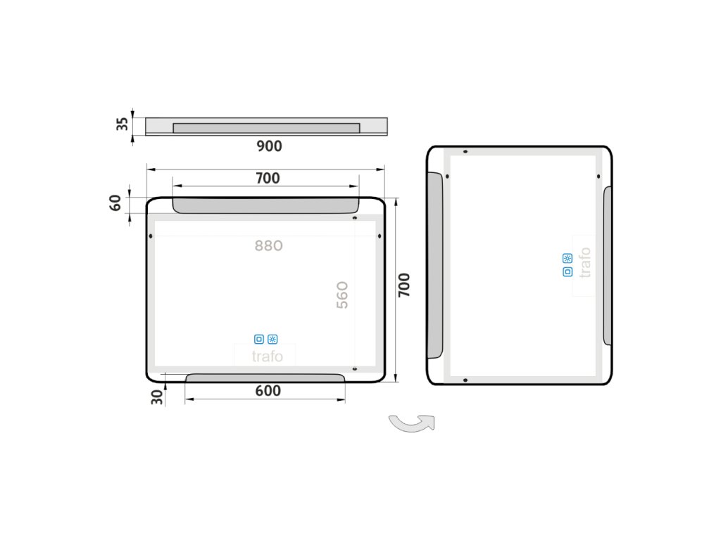 LED zrcadlo 900x700 se dvěma dotykovými senzory