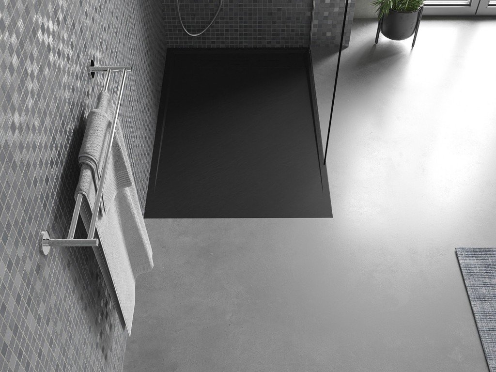 Sprchová vanička VEXO, vyrobená z SMC materiálu, zaujme matnou černou povrchovou úpravou s jemnou strukturou, imitující přírodní kámen. V ceně vaničky je zahrnuta i krytka...