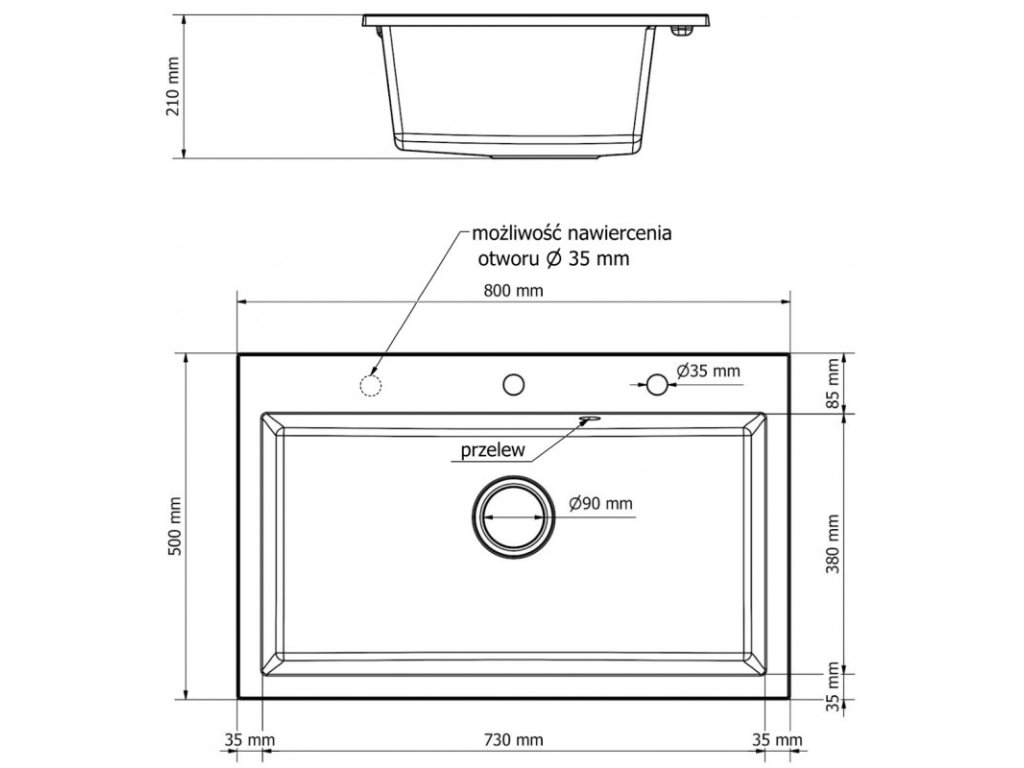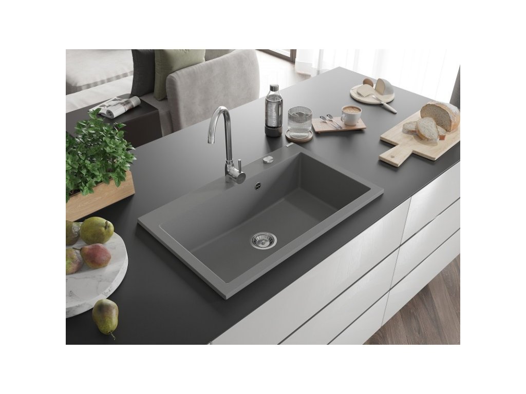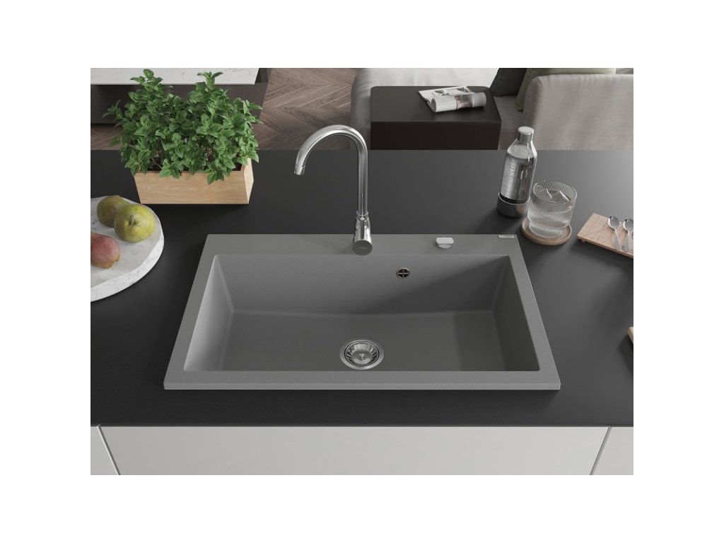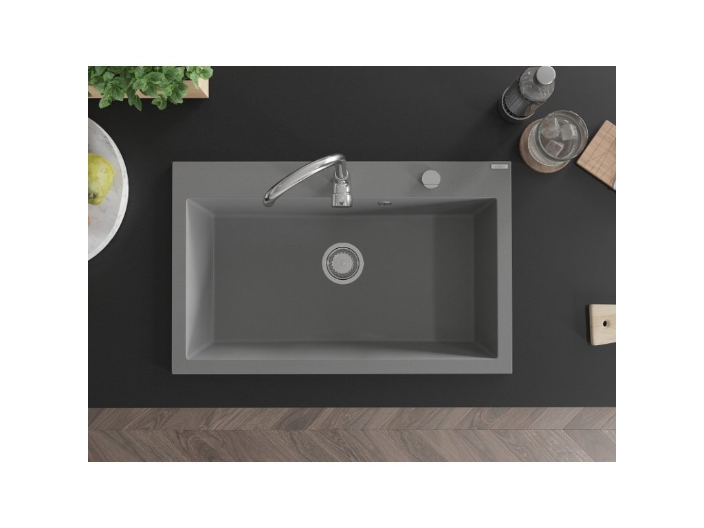 MEXEN - Elix granitový dřez 1-miska 800 x 500 mm, šedý, sifon chrom 6527801005-71