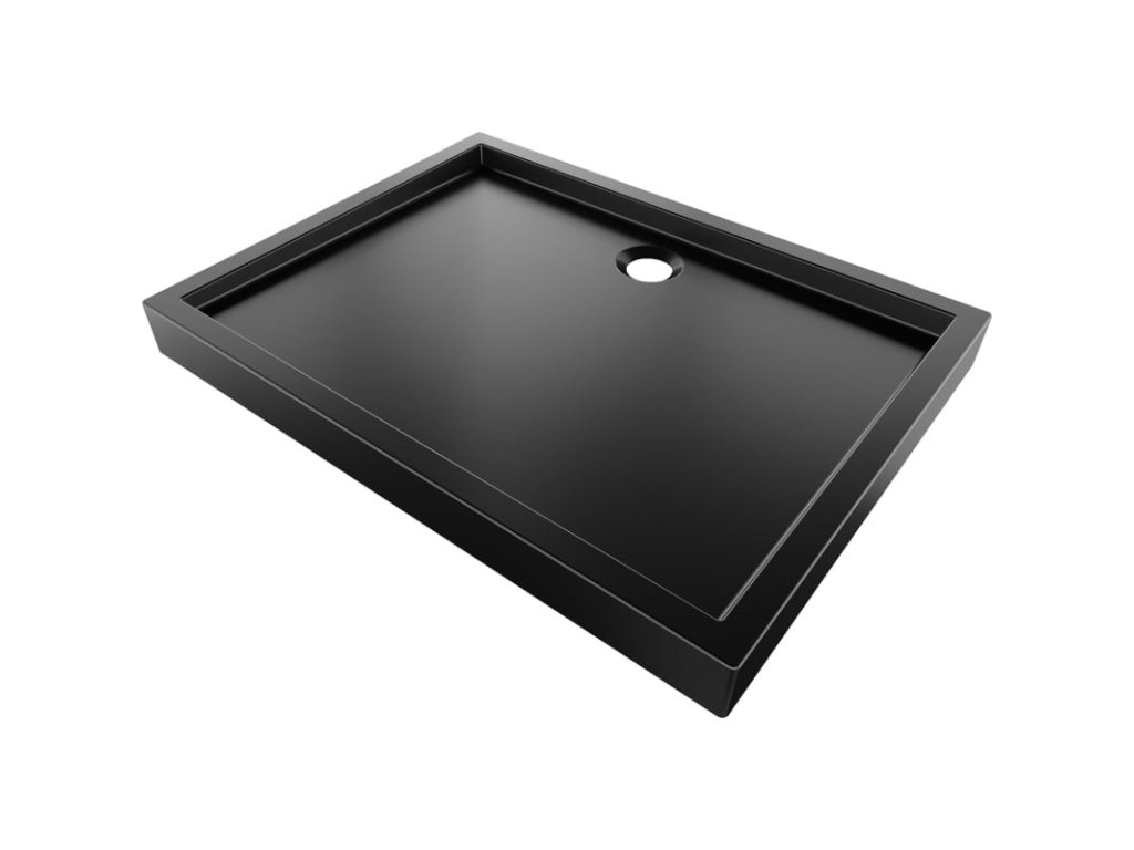 Specifikace produktu: Rozměr: 100x80x12 cm Barva: Matná černá Typ: Obdélníkový Materiál: Sanitární akrylát Zesílené dno Průměr odtoku: 90 mm Sprchová vanička neobsahuje sifonDoplňkové parametry
