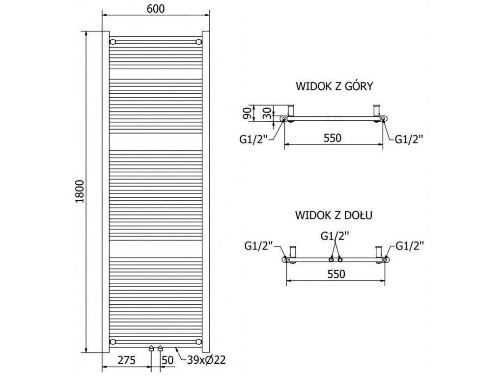 MEXEN - Mars otopný žebřík/radiátor 1500 x 600 mm, 729 W, černá W110-1500-600-00-70