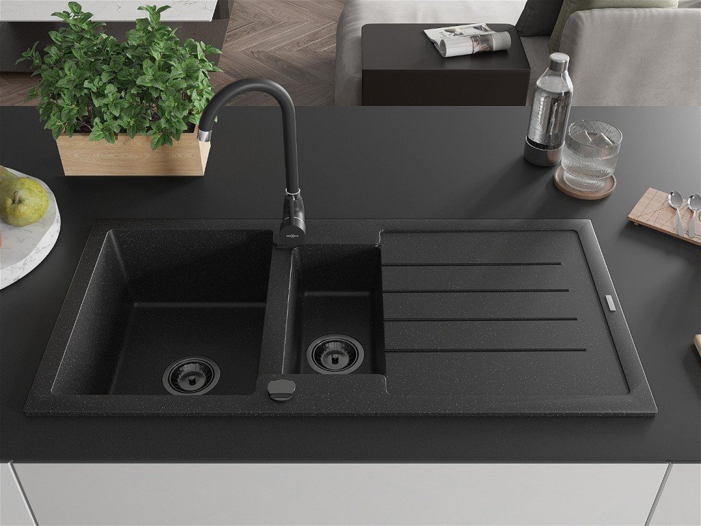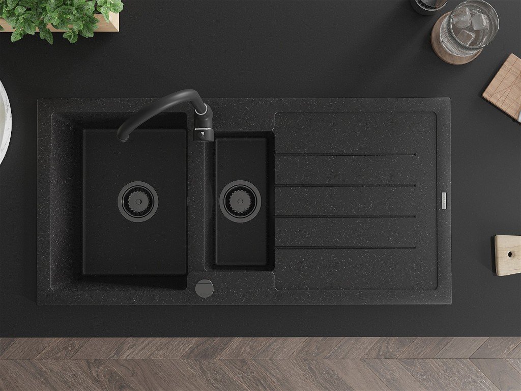 MEXEN/S - Andres granitový dřez s odkapávačem 1000 x 500 mm černá/stříbrná metalik černý sifon 6515101510-73-B