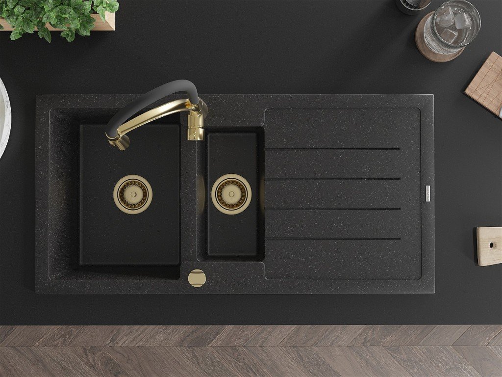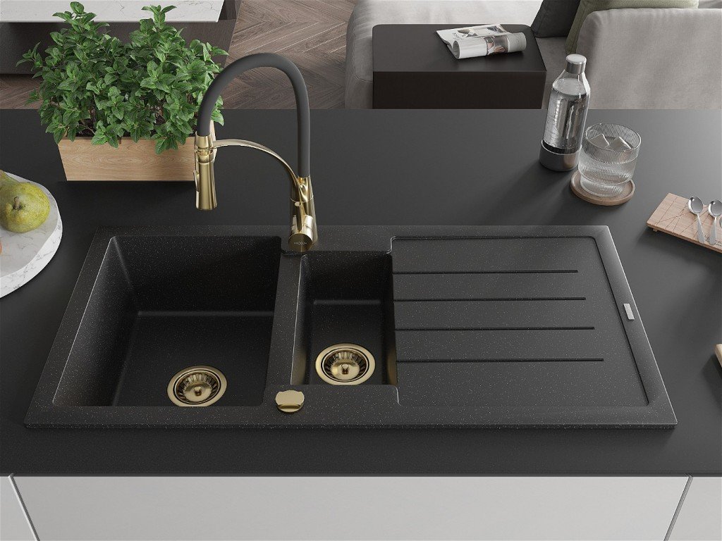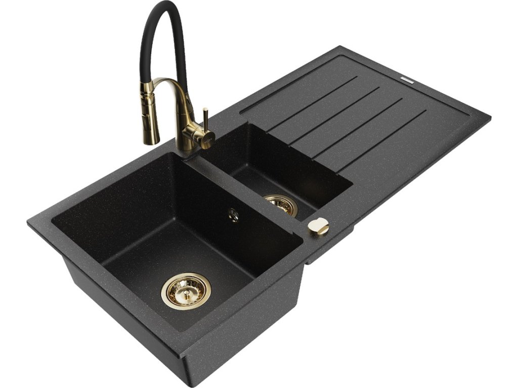 MEXEN/S - Andres granitový dřez s odkapávačem včetně baterie Aster, černá/stříbrná 6515-73-73450-57-G