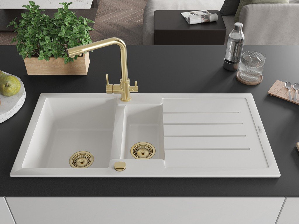 MEXEN/S - Andres granitový dřez s odkapávačem včetně baterie Duero, bílá 6515-20-671600-50