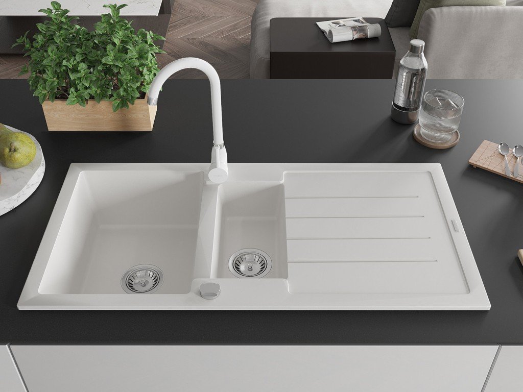 Vychutnejte si luxusní a praktický dřez v kombinaci se spolehlivou baterií! MEXEN/S - Matias granitový dřez 1.5 s odkapávačem včetně baterie Duero, bílá 6502-20-671600-70 je...