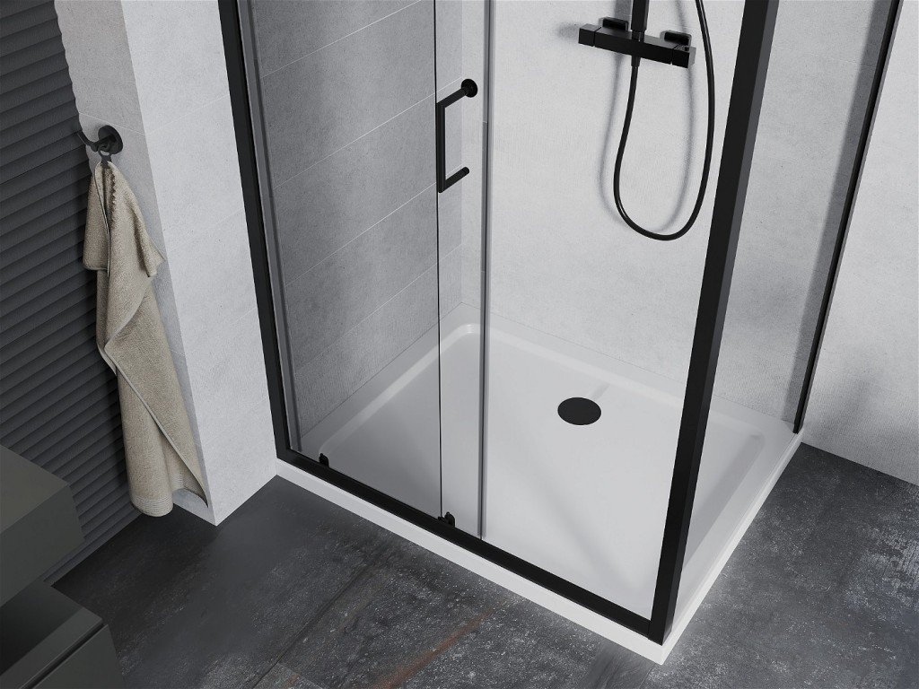 Luxusní celoskleněný obdélníkový kout opatřený jednotnými kovovými závěsy a nástěnnou vymezovací lištou. Sprchová zástěna VIVA 195 obdelník je vyrobena z tvrzeného...