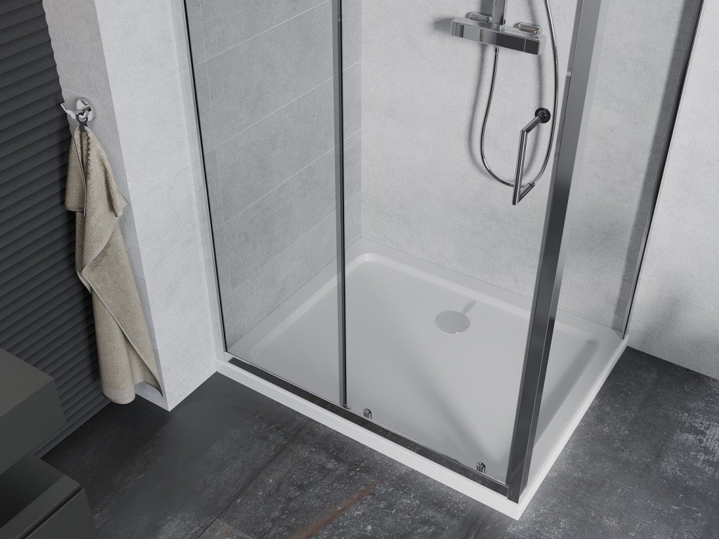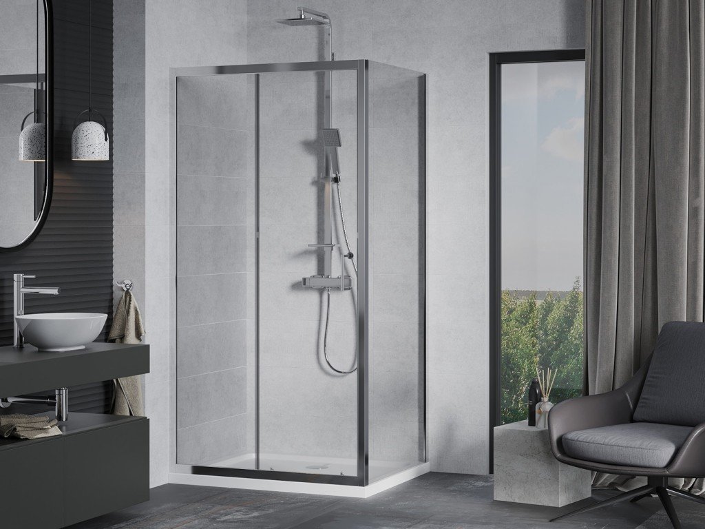 Luxusní celoskleněný obdélníkový kout opatřený jednotnými kovovými závěsy a nástěnnou vymezovací lištou. Sprchová zástěna VIVA 195 obdelník je vyrobena z tvrzeného...