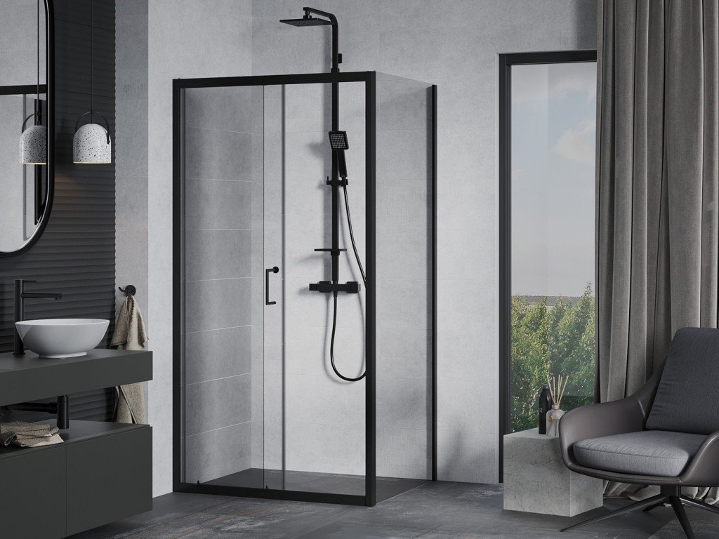 Luxusní celoskleněný obdélníkový kout opatřený jednotnými kovovými závěsy a nástěnnou vymezovací lištou. Sprchová zástěna VIVA 195 obdelník je vyrobena z tvrzeného...