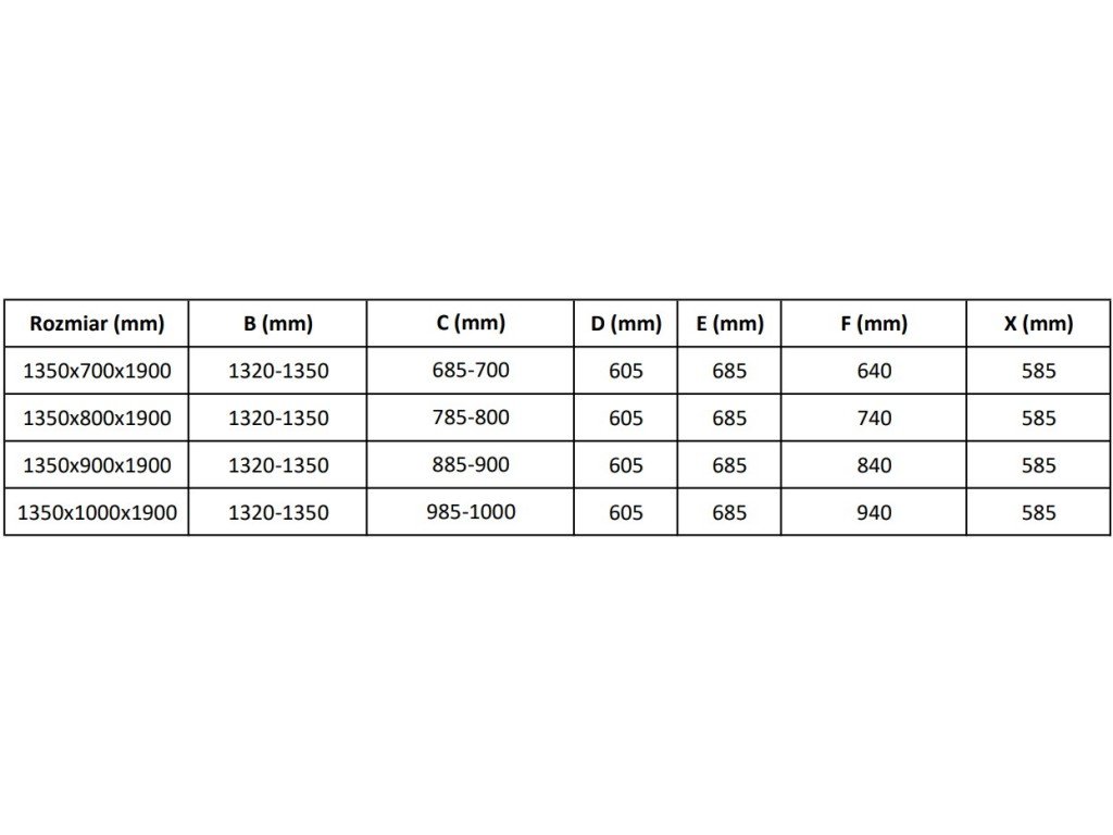 Specifikace produktu:Rozměr: 135x90 cm (dveře 135 cm, stěna 90 cm)