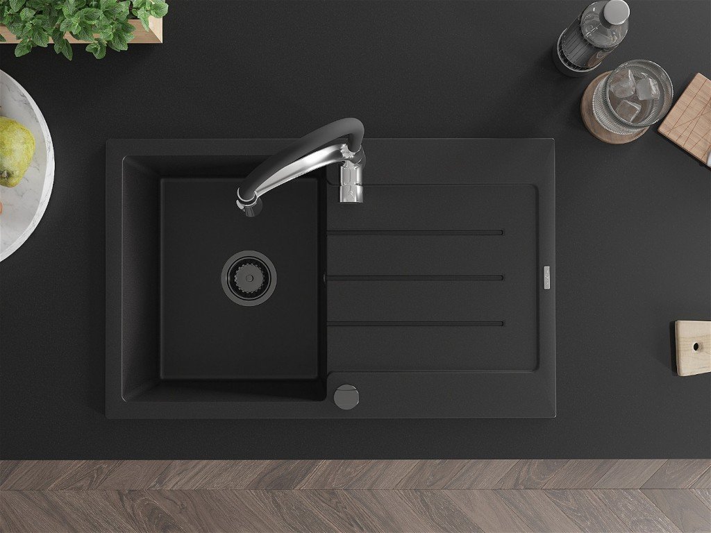 MEXEN/S - Bruno granitový dřez s odkapávačem včetně baterie Aster, černá 6513-77-73450-07-B