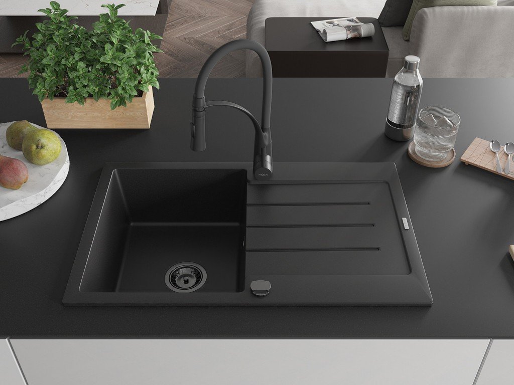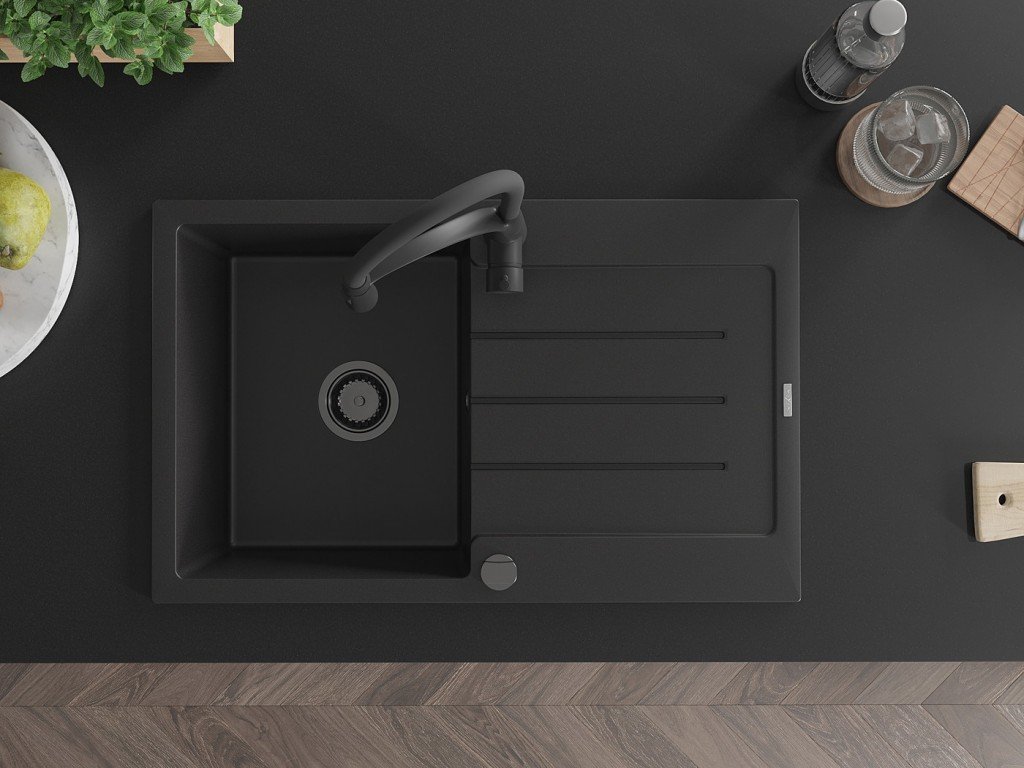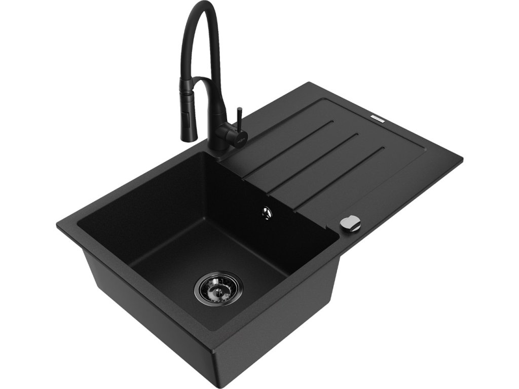 MEXEN/S - Bruno granitový dřez s odkapávačem včetně baterie Aster, černá 6513-77-73450-70-B