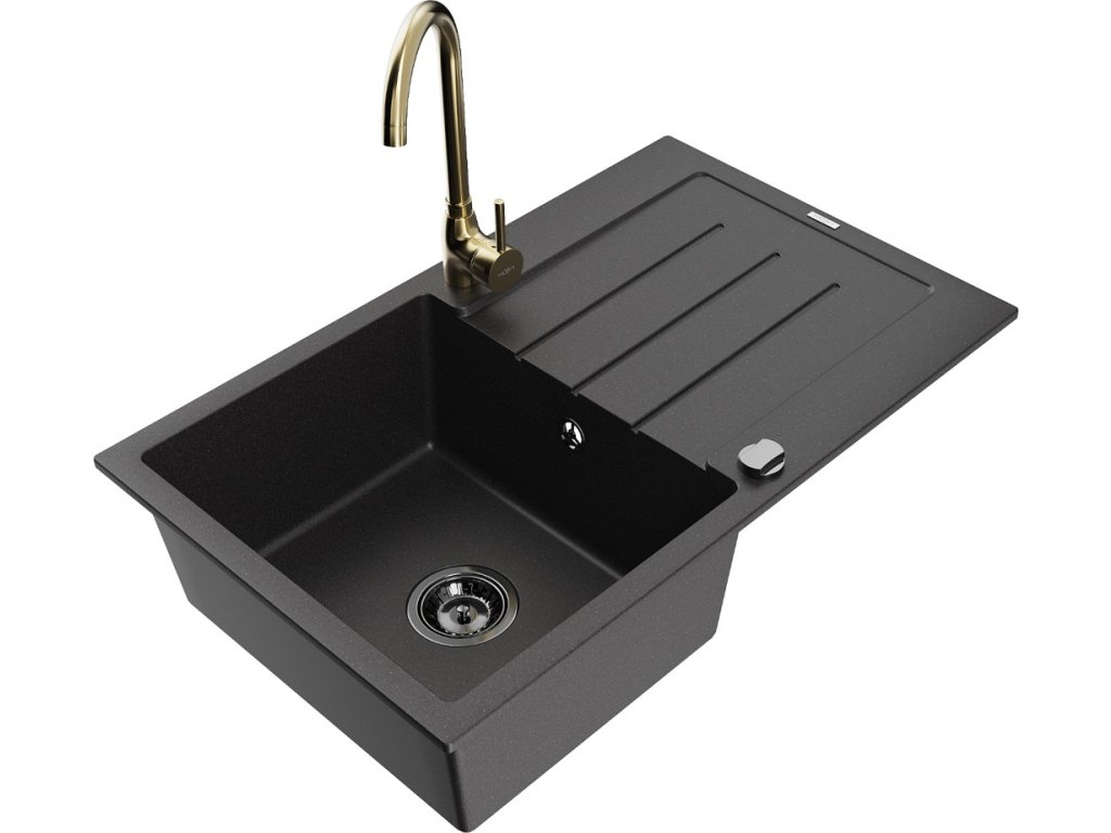 MEXEN/S - Bruno granitový dřez s odkapávačem včetně baterie Telma, černá 6513-77-670200-50-B